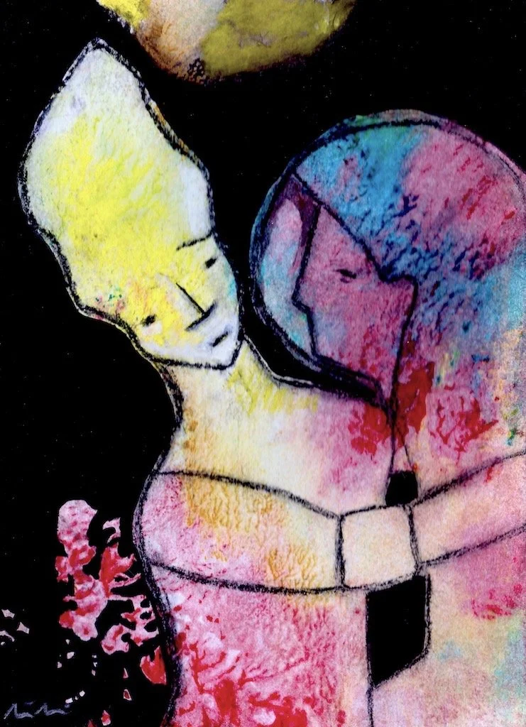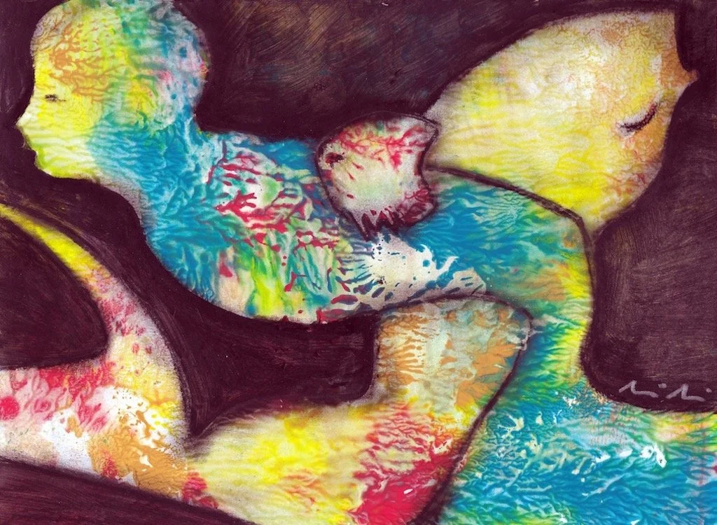 Amantes 5ª dimensión. Técnica mixta. 14cm x 16cm.