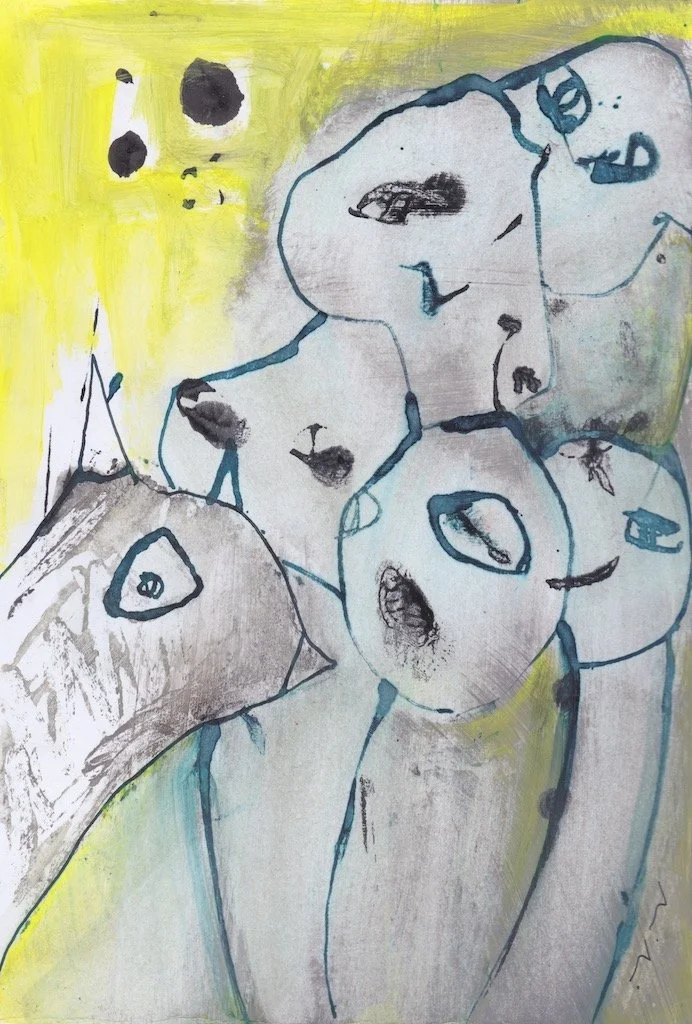 Ellos cantan y yo. Técnica mixta. 25cm x 17,5cm.