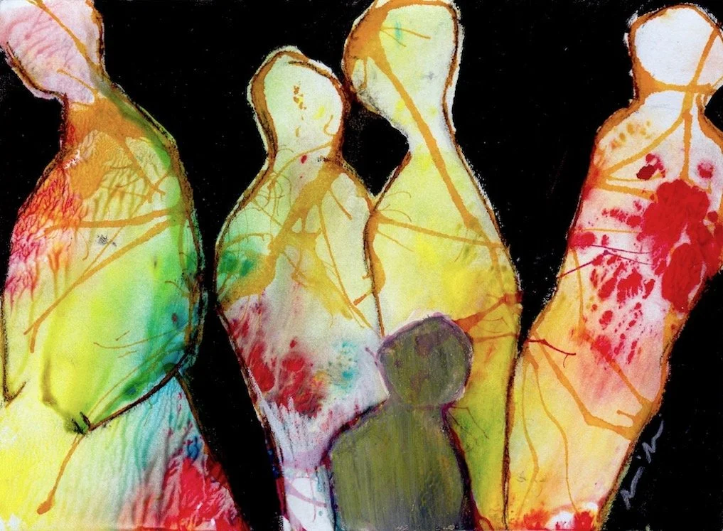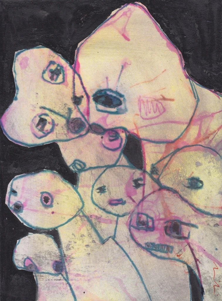 Mis amigos y yo. Técnica mixta. 13cm x 18cm.
