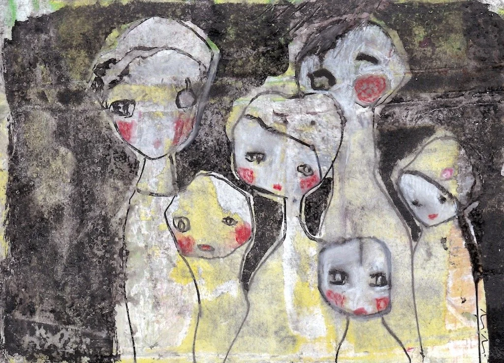 Entre la multitud. Técnica mixta. 13cm x 18cm.