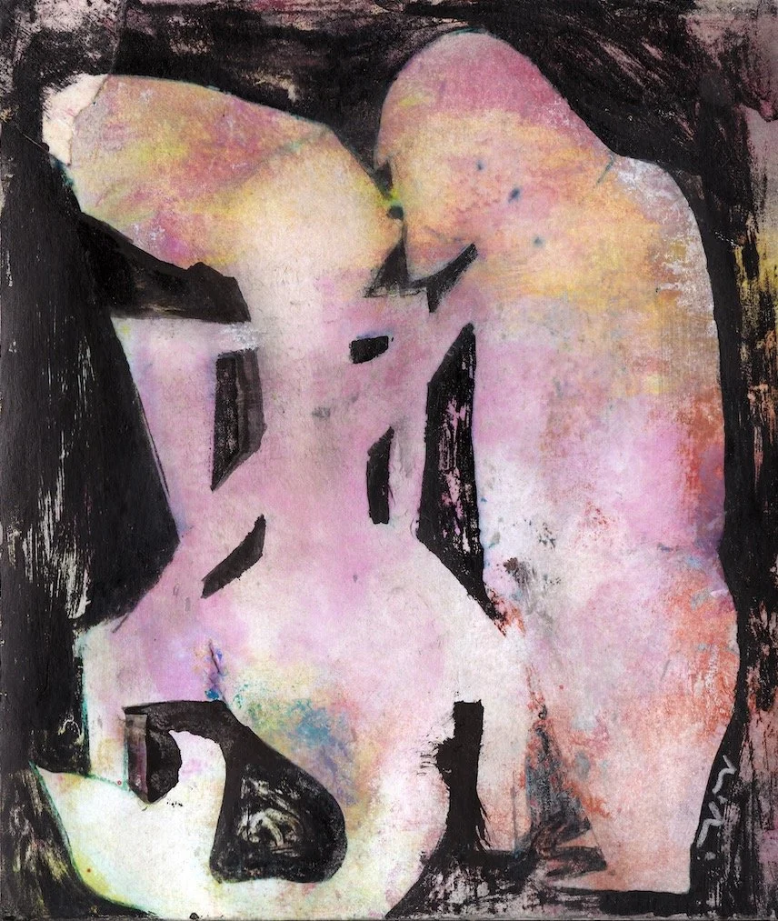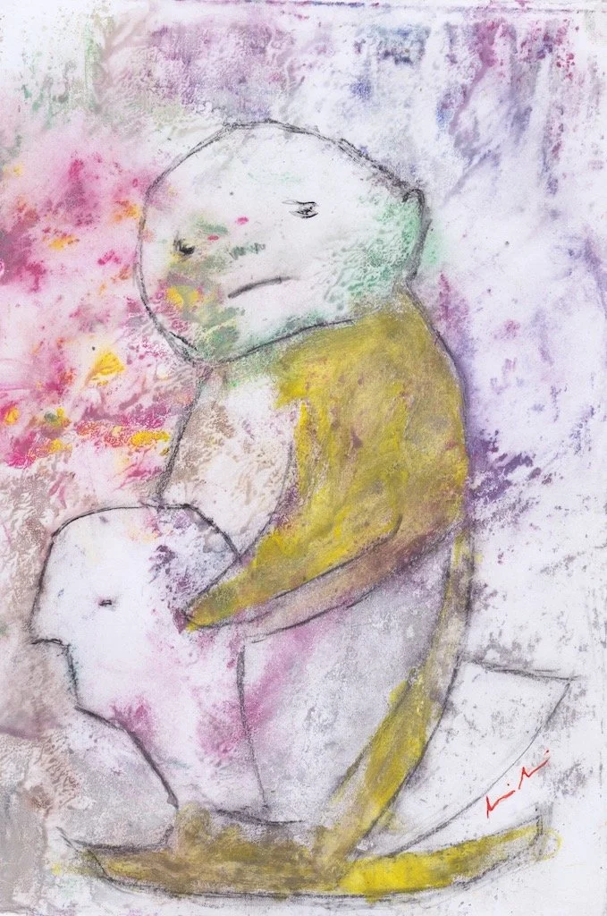 Te abrazo y beso tu pelo. Técnica mixta. 14cm x 16cm.