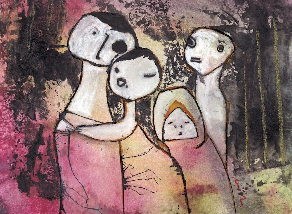 Familia confinada. Técnica mixta. 13cm x 18cm.
