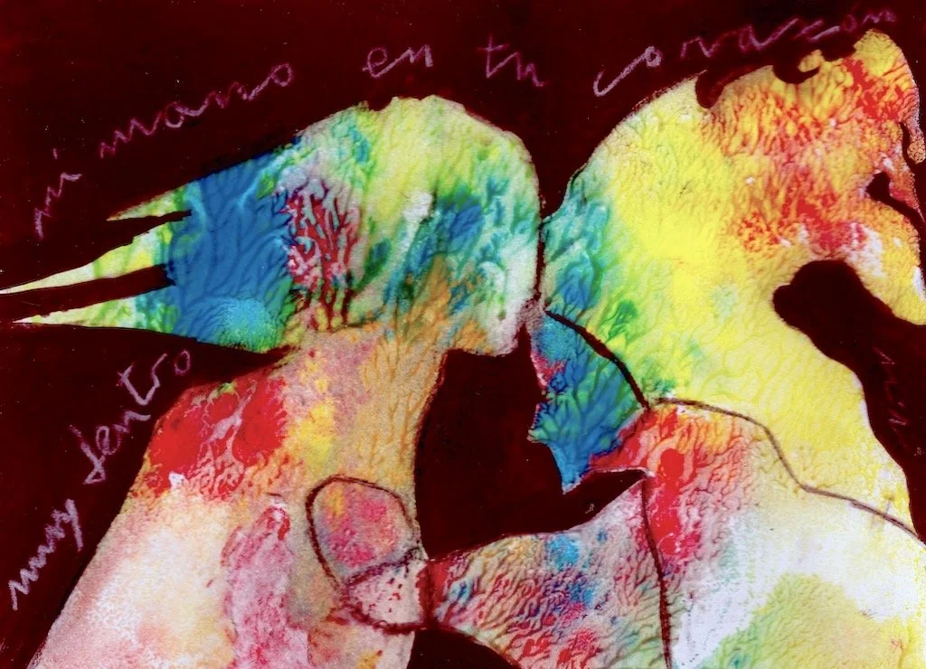 Mi mano en tu corazón. Técnica mixta. 13cm x 18cm.