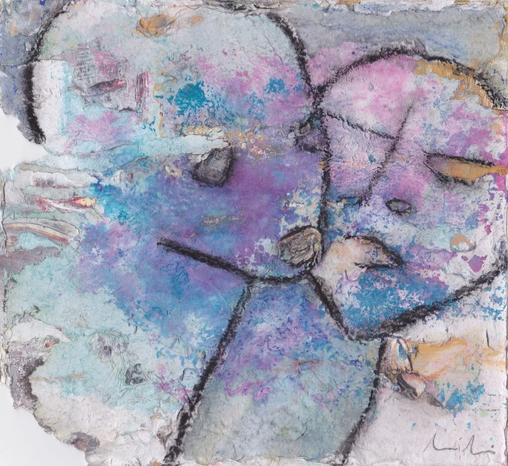 Encuentro en el espacio. Técnica mixta. 18cm x 13cm.