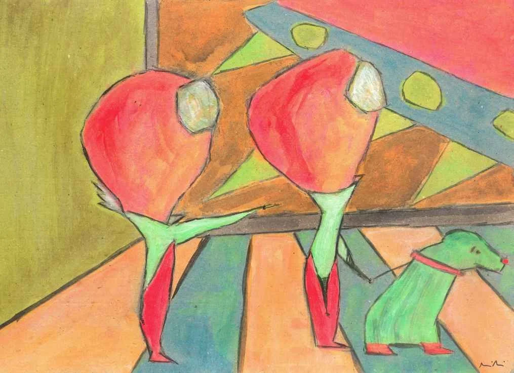En esta serie, estos seres extraterrestres, de colores fluorescentes nos muestran escenas cotidianas ante la mirada del humano. Con un trazo casi inocente y fluido estos personajes fluyen en las emociones humanas. ¿Será el humano de la ventana a su vez observado por otro ser?